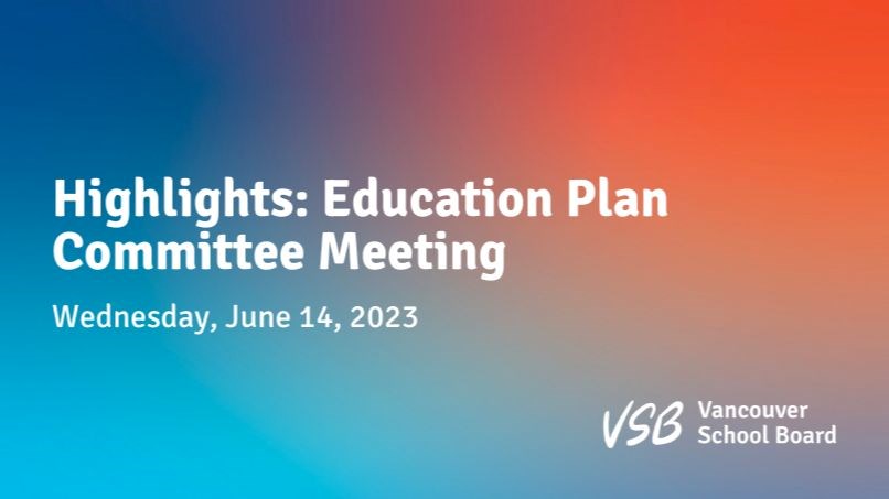 The Vancouver School Board’s Education Plan Committee meeting was held on the evening of Wednesday, June 14, 2023. More details can be found on the agenda package or by viewing the live stream recording.