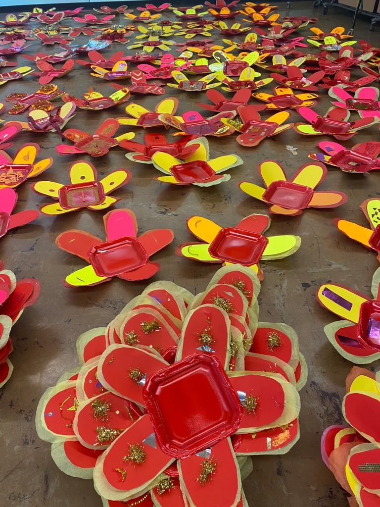Collaborative projects like this were regular events during my long career as an art teacher in both elementary and secondary schools. I understand the positive effect they can have on students, reinforcing their sense of self-esteem and belonging, when they see what their own small contribution can make to a large and beautiful installation.